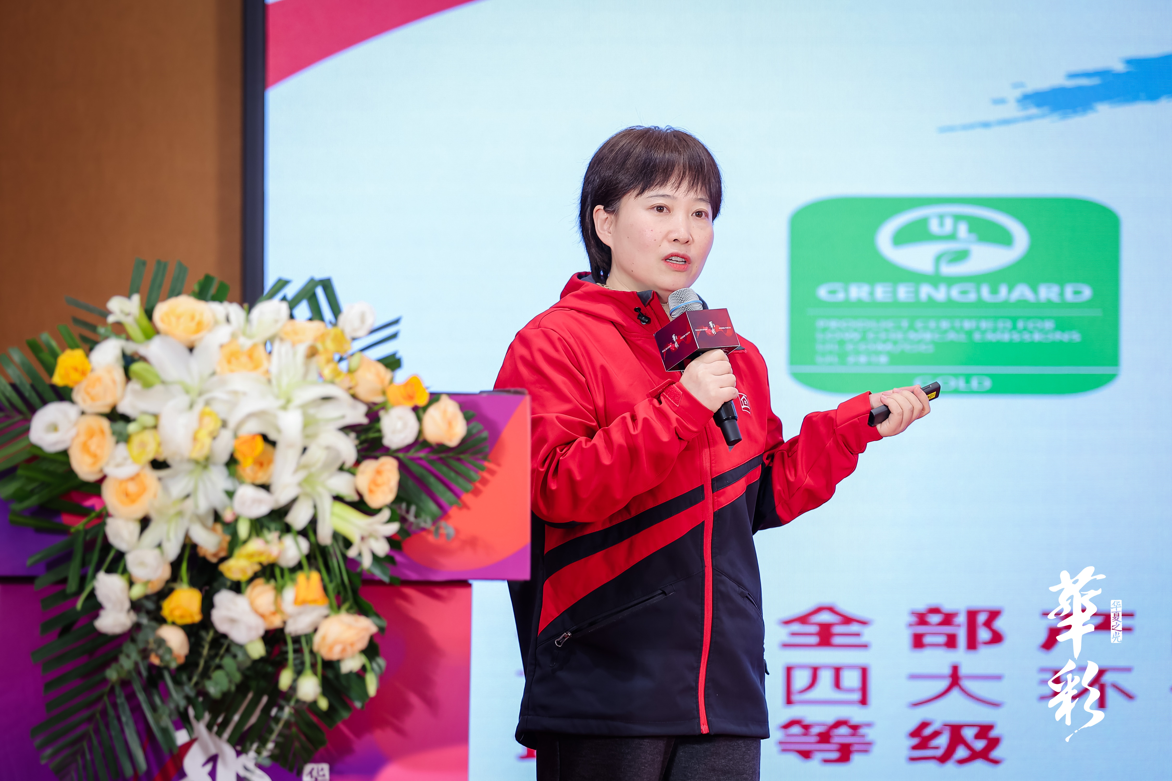 品牌部负责人程娟则从品牌建设角度出发,分享了《华彩愿景》。她表示,华彩漆是美巢“环保家居守护者”品牌使命的延伸,承载着美巢追求卓越品质、弘扬民族品牌的初心。“让世界看到中国的色彩,让中国的品牌在国际舞台上发光。”