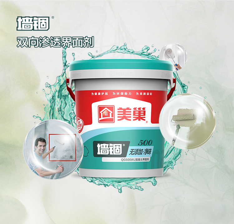 | 施工事项: | A、墙面或地面基层界面处理:须加水稀释使用,加水比例为50%~55%。稀释后用工具在基层表面涂布1~2遍,涂膜表干后须开始后续施工,提升双向渗透效果,强化粘结强度。 B、水泥拉毛:不得加水使用。将本品与水泥(建议使用符合GB 175要求的强度等级不低于42.5级的普通硅酸盐水泥)按质量比1:2搅拌成胶浆状,用工具涂抹于基层表面,待硬化后即可开始后续施工。 |